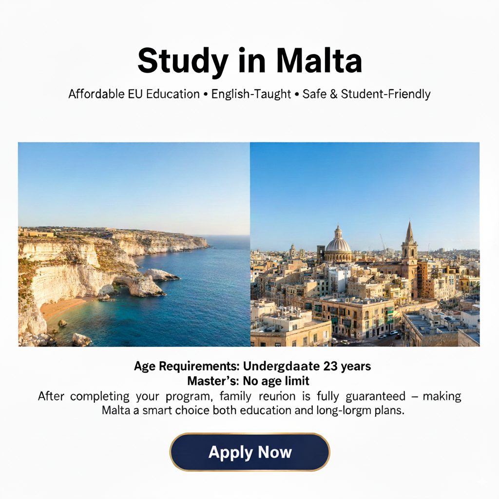 After completing your program, family reunion is fully guaranteed — making Malta a smart choice for both education and long-term plans.